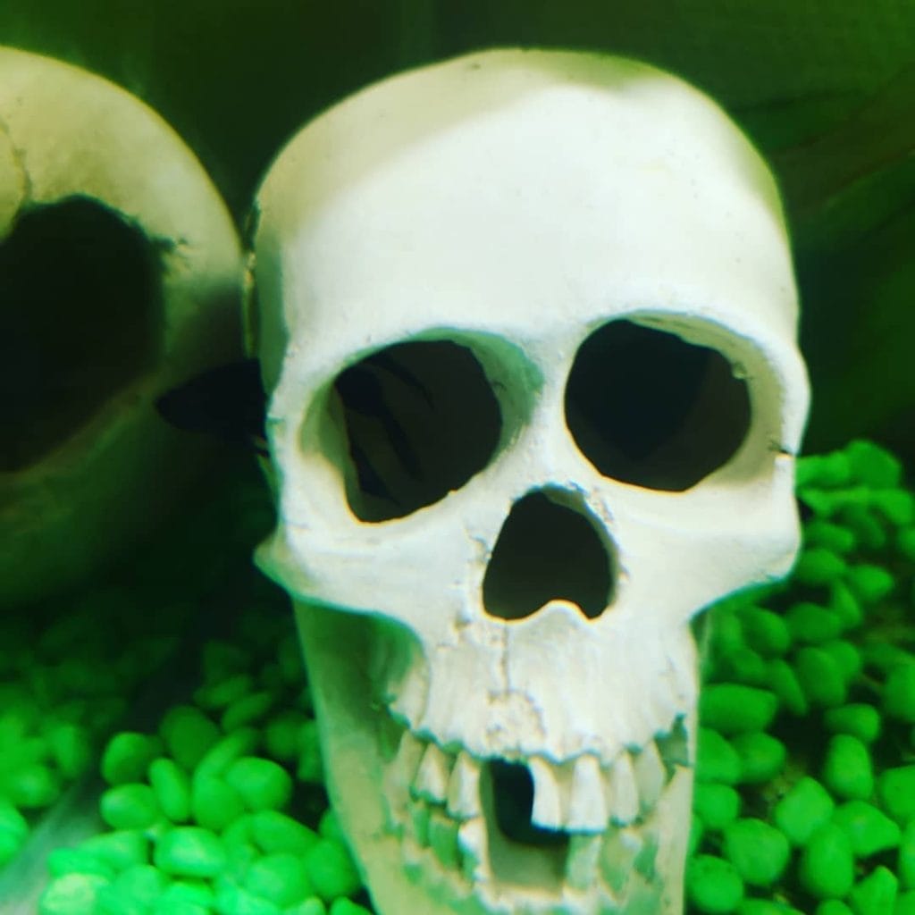 Creepy but cool, this skull decoration doubles as a cave. The eyes and mouth offer hiding spots while adding spooky character to the tank.