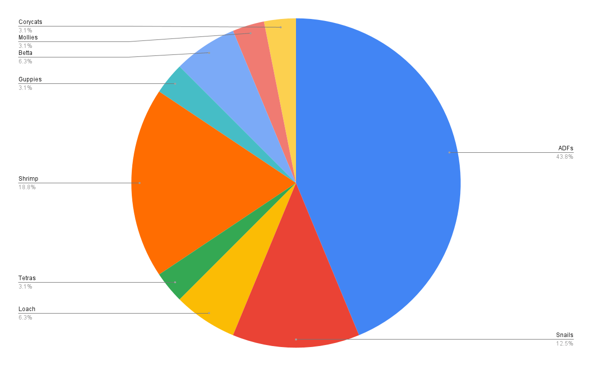 I have got a whole array of answers. For convenience, I’ve aggregated the answers on a sheet and made a chart. I know it seems nerdy, but a very quick way to understand what tank mates are really recommended by ADF owners.