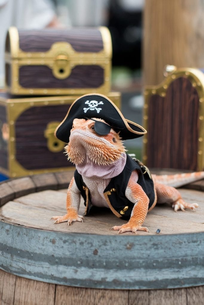 Ahoy! Turn your bearded dragon into a fierce (but adorable) pirate with a pirate hat, eye patch, and a little vest. This costume is great for Halloween or playful photoshoots.
