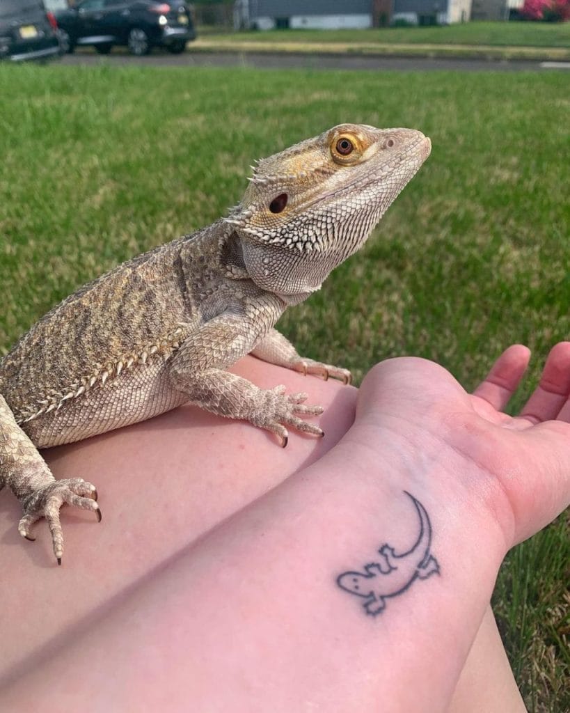 People love to find unique ways to keep a mark on their pet friends. Instead of making a full design of a Bearded dragon’s body, a small footprint tattoo of a Bearded dragon can be a pleasant body artwork. It seems like a small tribute from your loving Bearded dragon.