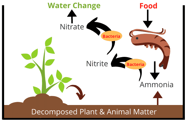 When there is living animal in your aquarium, their waste particles, uneaten foods, decomposed plant materials, dead organisms, etc. everything creates ammonia. Ammonia is deadly for not only shrimps, any type living being in the aquarium.