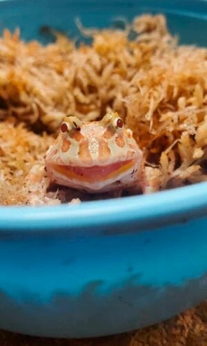 Pacman frogs are nocturnal and usually rest or sleep with their eyelids open.