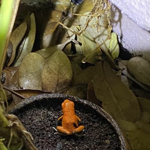 In the wild, dart frogs often hide out in natural places. You can mimic the wild environment with leaf litter, live plants, dried leaves, coconut shells, etc.