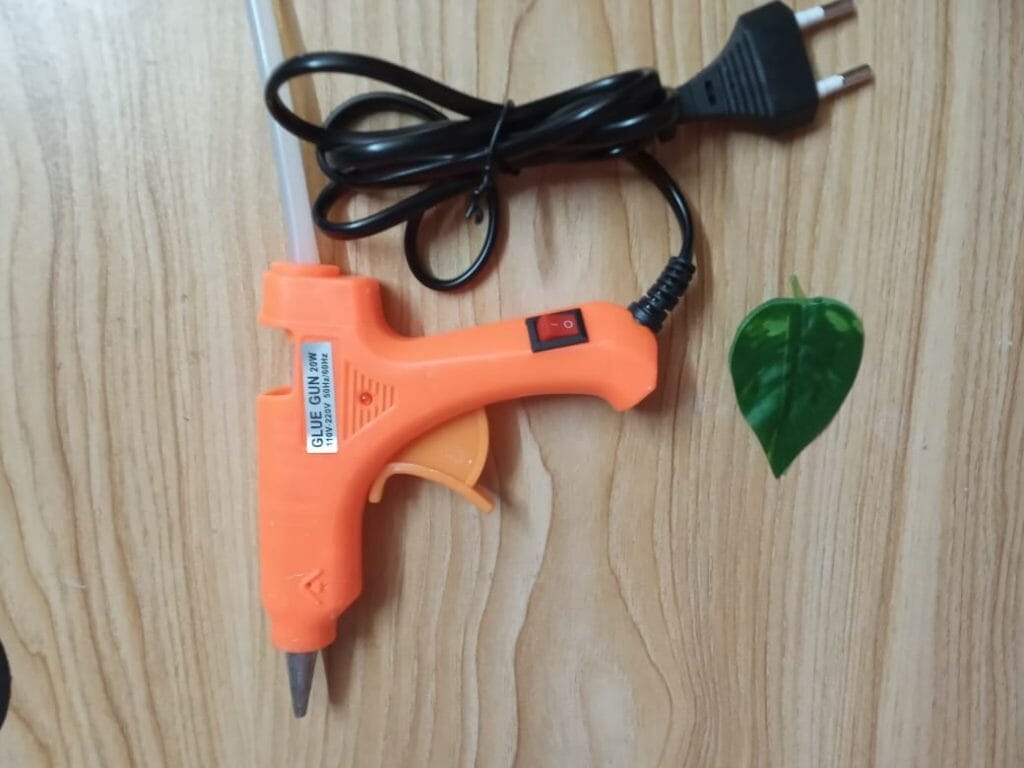 Using the glue gun, stick the opposite sides of the leaf using the glue gun and silicon glue.