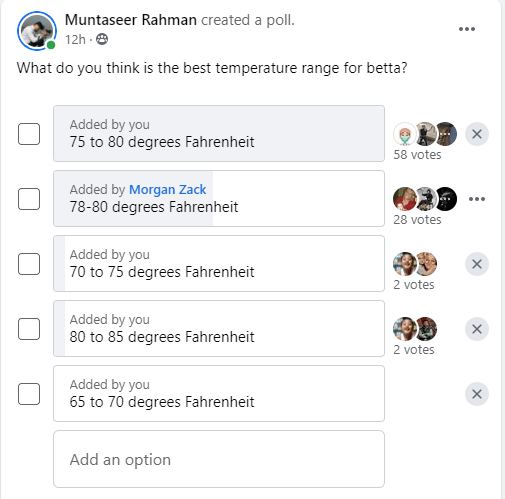 I did a poll on a popular betta Facebook group to see what temperature range for betta is the most popular.