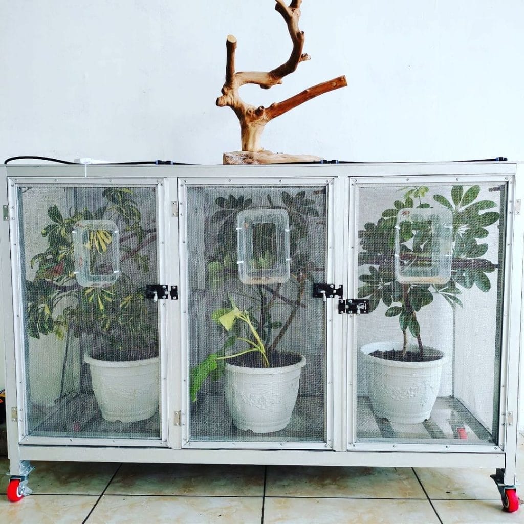 This DIY wooden chameleon cage idea requires your craftsmanship skills and patience. You need to prepare a cabinet-styled structure with wood. Another feature of this tank design is having no substrate. For this reason, you will have to bring potted plants.